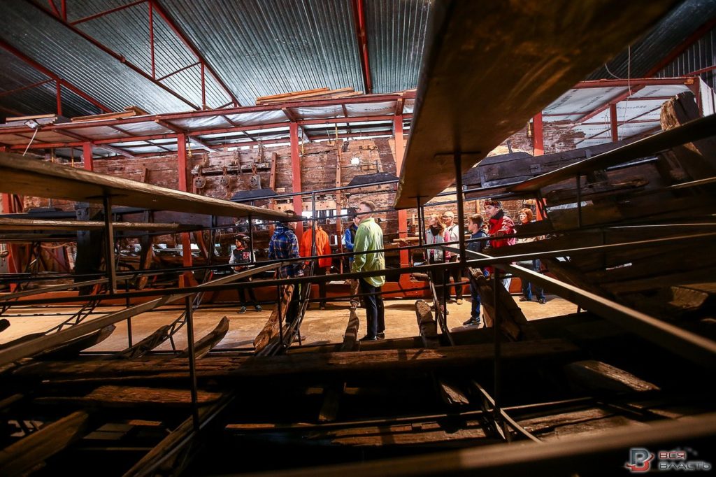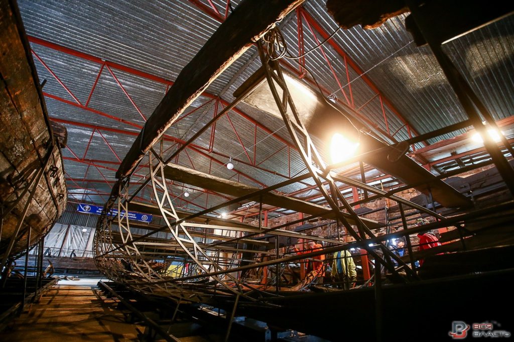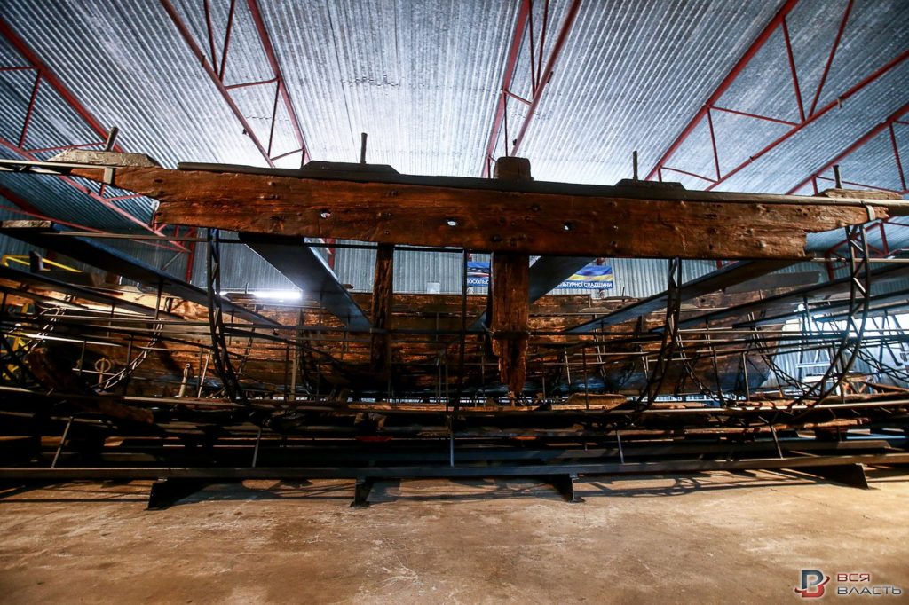Реставрацию суден проводили в специальном ангаре. Судна установили на так называемые помосты.