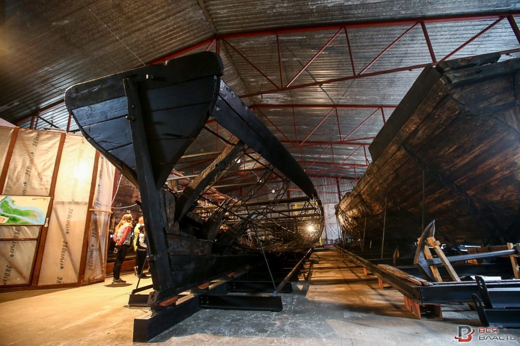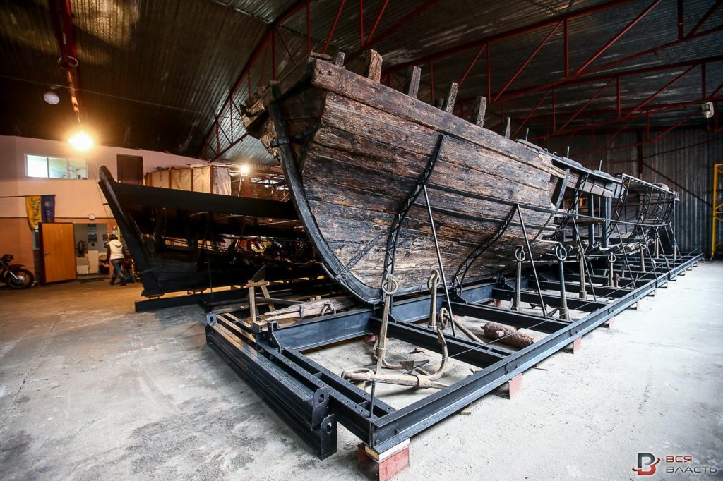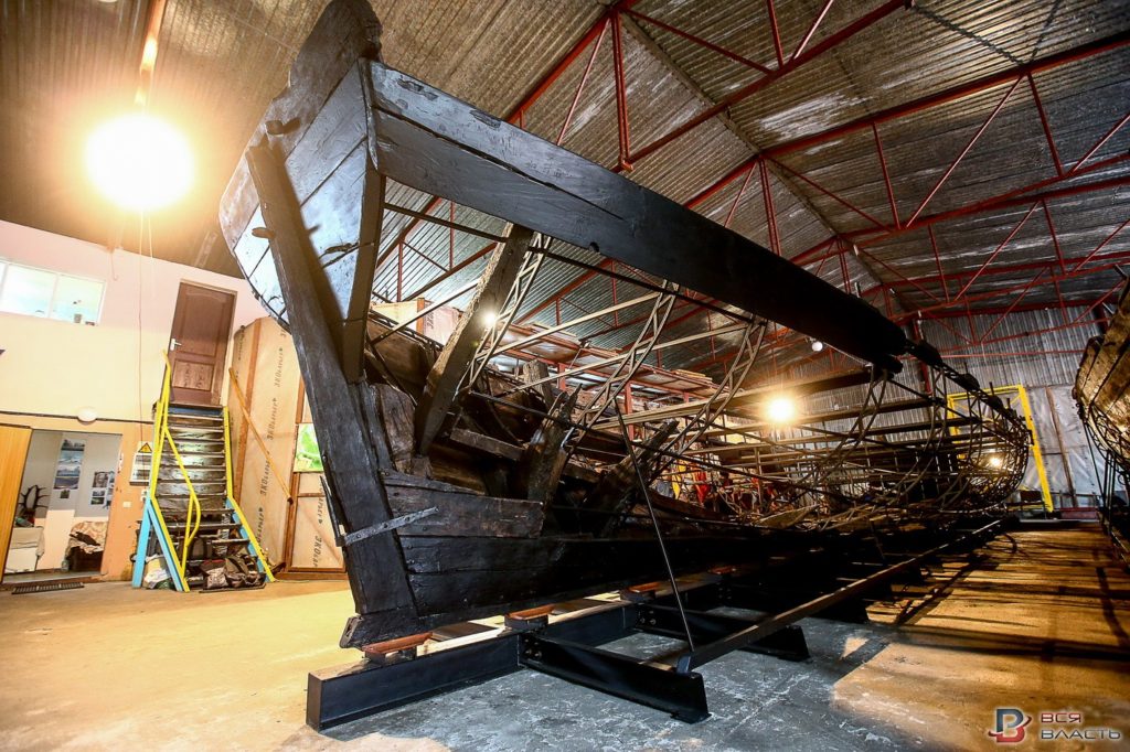 По словам археолога, для того, чтобы вернуть лодкам первозданный вид, был сделан специальный металлический каркас.