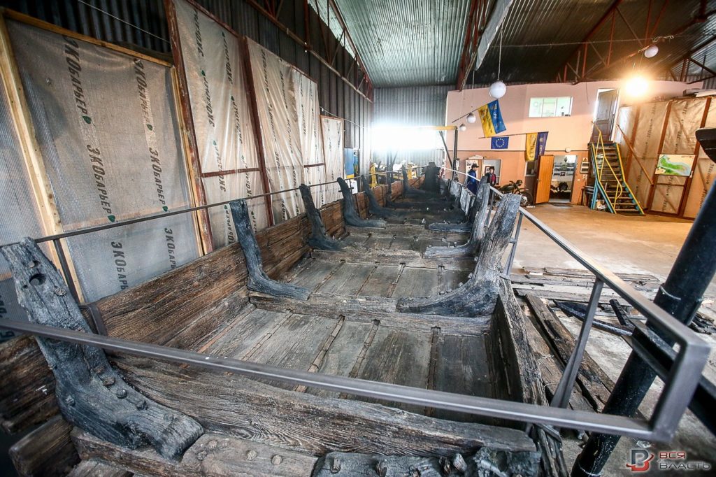 – В Украине нет чертежей казацкой лодки. Нам пришлось просчитывать форму корпуса исходя из размера сохранившихся деталей. Мы сделали каркас и на него крепили найденные фрагменты. Это очень трудоемкая и кропотливая работа – все равно, что пазл собирать – нужно подбирать каждый фрагмент. По возможности мы стараемся не ставить лишних деталей, – рассказывает Дмитрий Кобалия.
