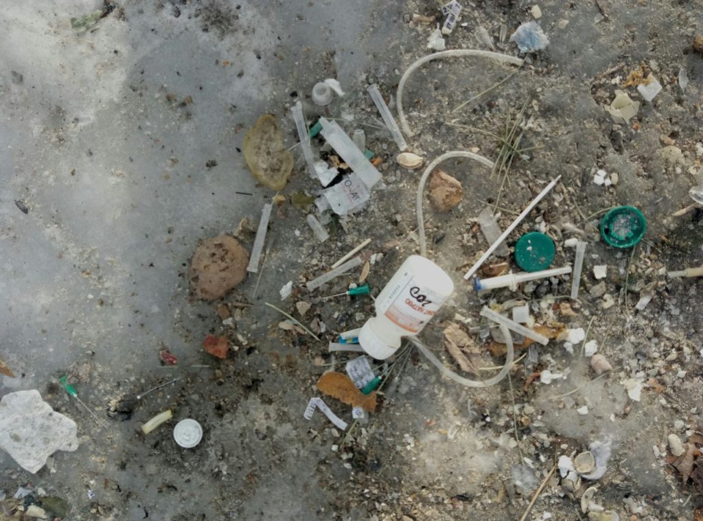 В окрестностях детской больницы, которая находится в Коммунарском районе города по адресу ул. Комарова, 12, стоят полные мусорные контейнеры, вокруг которых разбросаны разбитые ампулы, использованные шприцы и пустые пузырьки из-под лекарств.