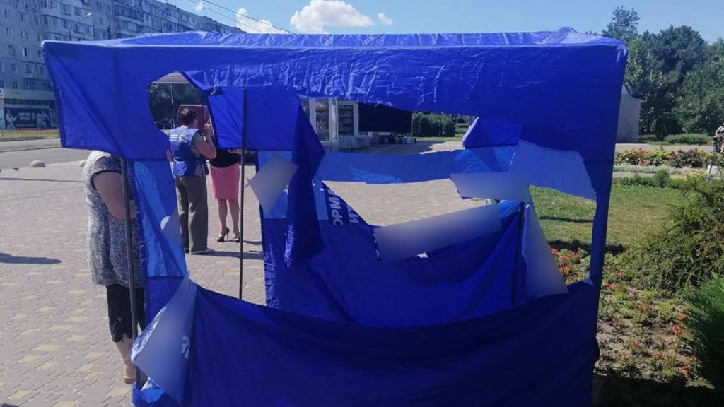 Нагадаємо, в п’ятницю, у поліцію надійшли повідомлення від активістів однієї з політичних партій про те, що невідомі порізали намети і розкидали їх агітаційну друкарню. Пізніше поліція затримала нападників – двох хлопців 21 і 19 років.