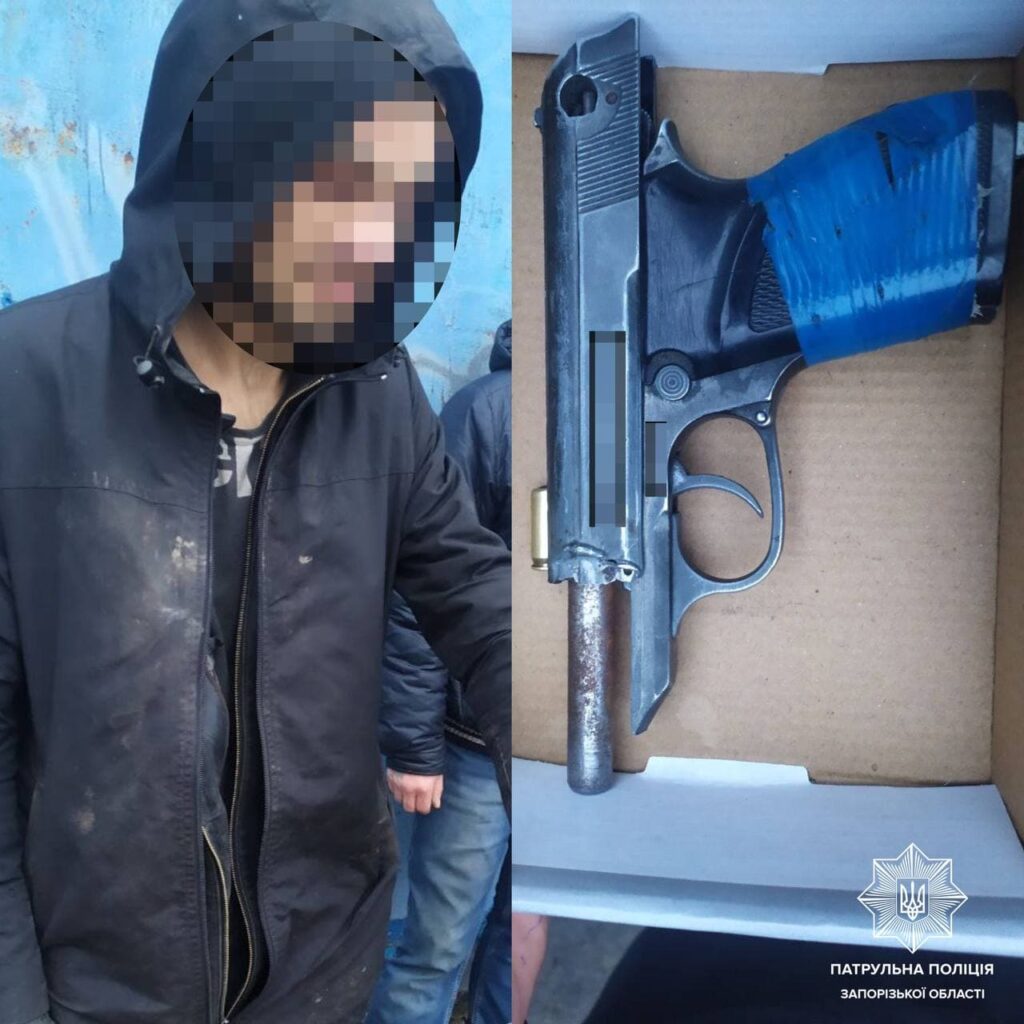 Пізніше на вулиці Новгородській у Хортицькому районі міста, під час спільного відпрацювання прилеглої території з дільничним офіцером поліції, поліцейські зупинили підозрілого громадянина. Під час спілкування 31-річний чоловік помітно нервував. Коли інспектори провели поверхневу перевірку, виявили пістолет.