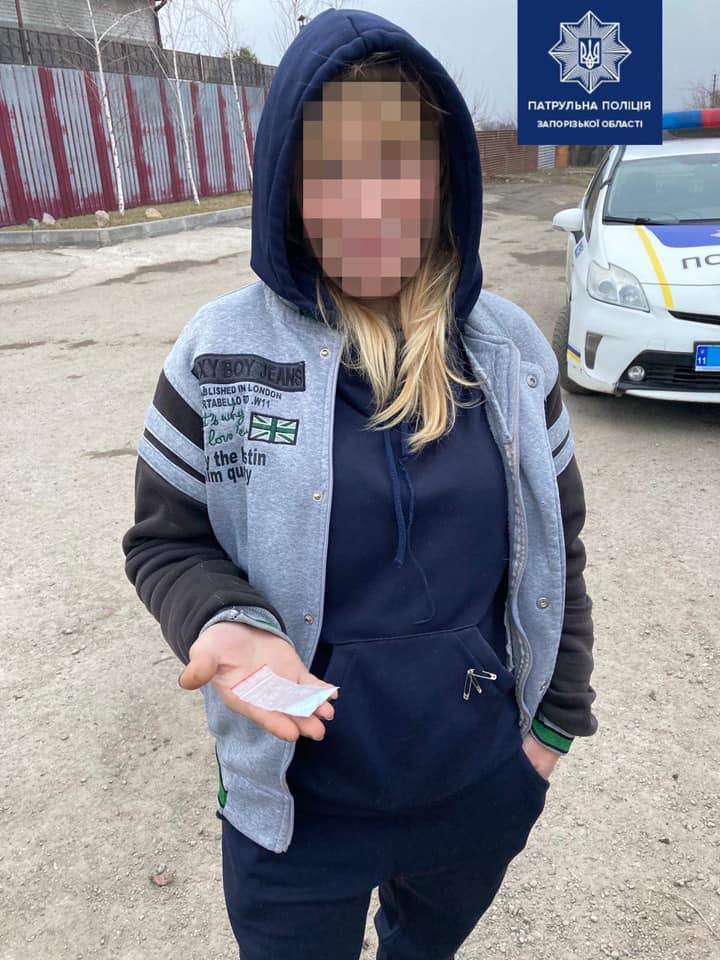 Згодом на вулиці Ракетній інспектори помітили підозрілу жінку, які намагалася зникнути з поля зору патрульних. Наздогнавши громадянку, патрульні виявили в неї зіп пакет з речовиною наркотичного походження. Жінка повідомила, що придбала речовину для власного вживання.