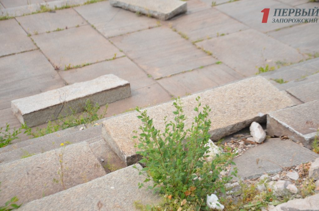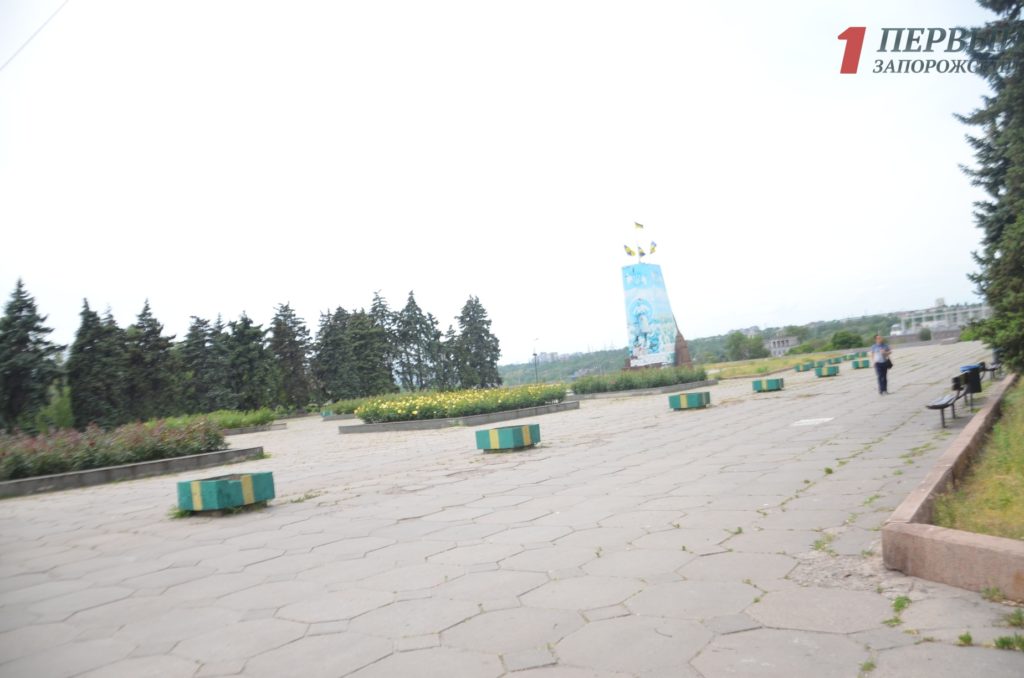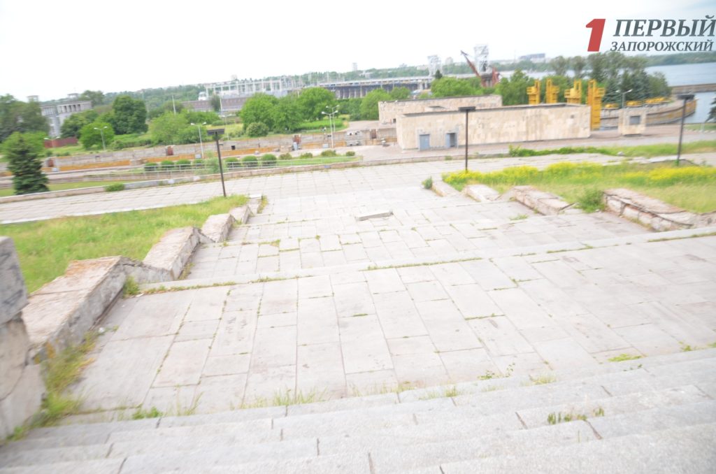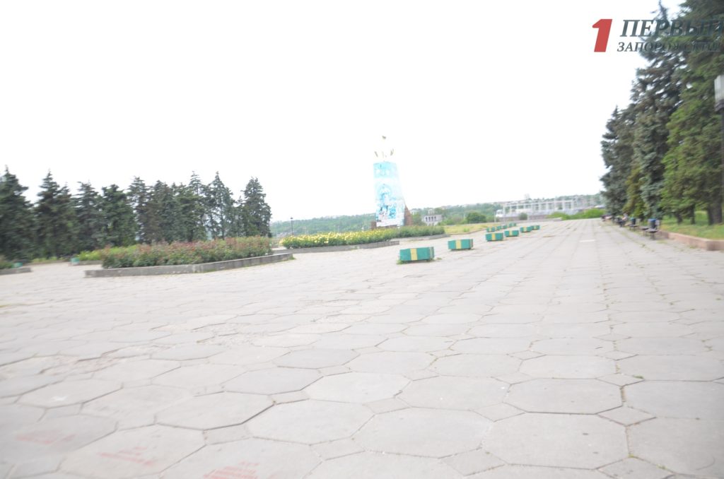Площадь Запорожская, с великолепным видом на панораму Днепра, находится в разрухе несмотря на все обещания властей по ее благоустройству.