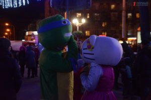 Дети и взрослые весело проводили время, делали селфи и семейные фото в тематических фотозонах, блуждали в сказочном новогоднем лабиринте. Для маленьких запорожцев работали аниматоры в костюмах героев мультфильмов. Неудивительно, что все дети и даже взрослые охотно фотографировались с черепашкой-ниндзя, миньоном, Микки Маусом, кроликами и другими персонажами.