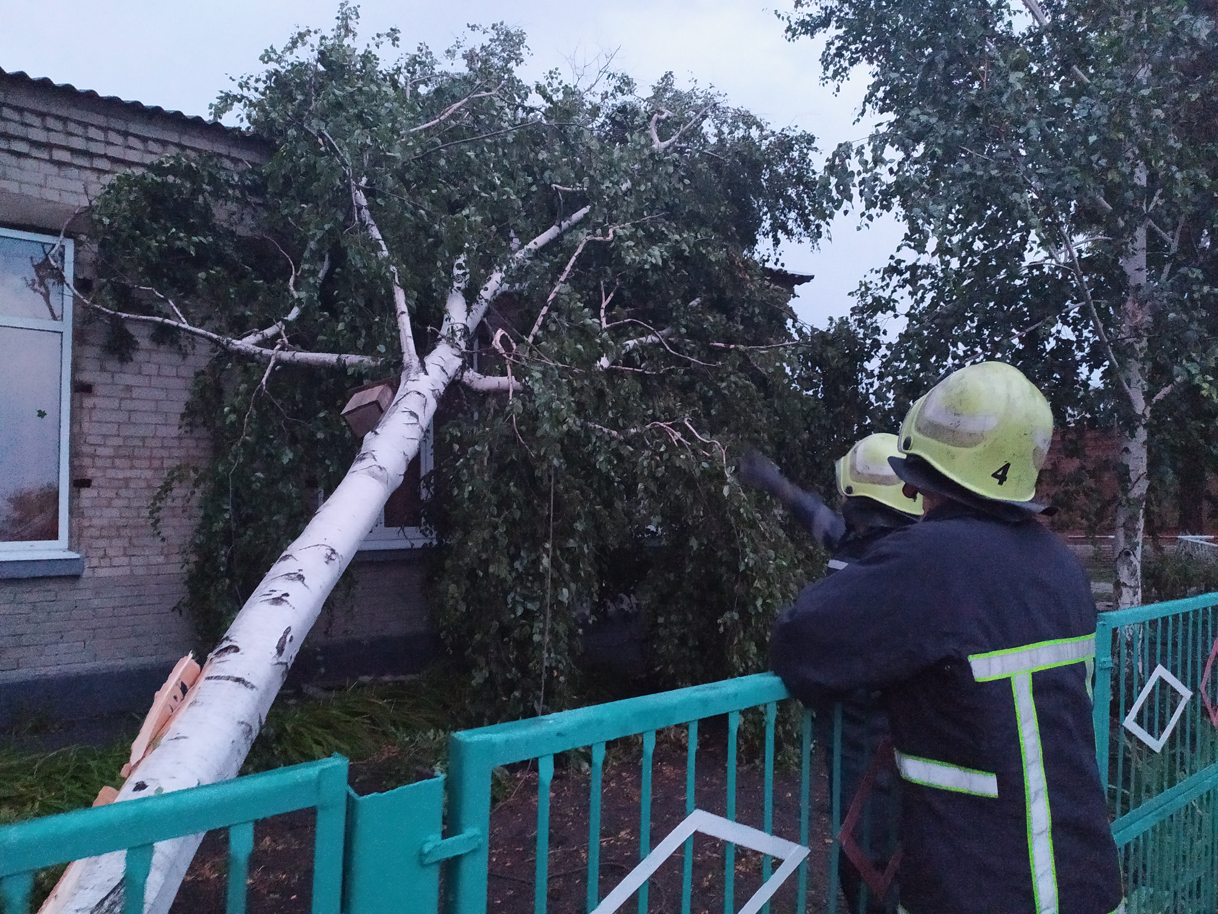 У службу порятунку зателефонував голова Вільнянської РДА та повідомив, що три дерева впали на сільську школу і зламали дах. Рятувальники дійсно підтвердили, що сталося руйнування покрівлі на площі в 400 квадратних метрів.