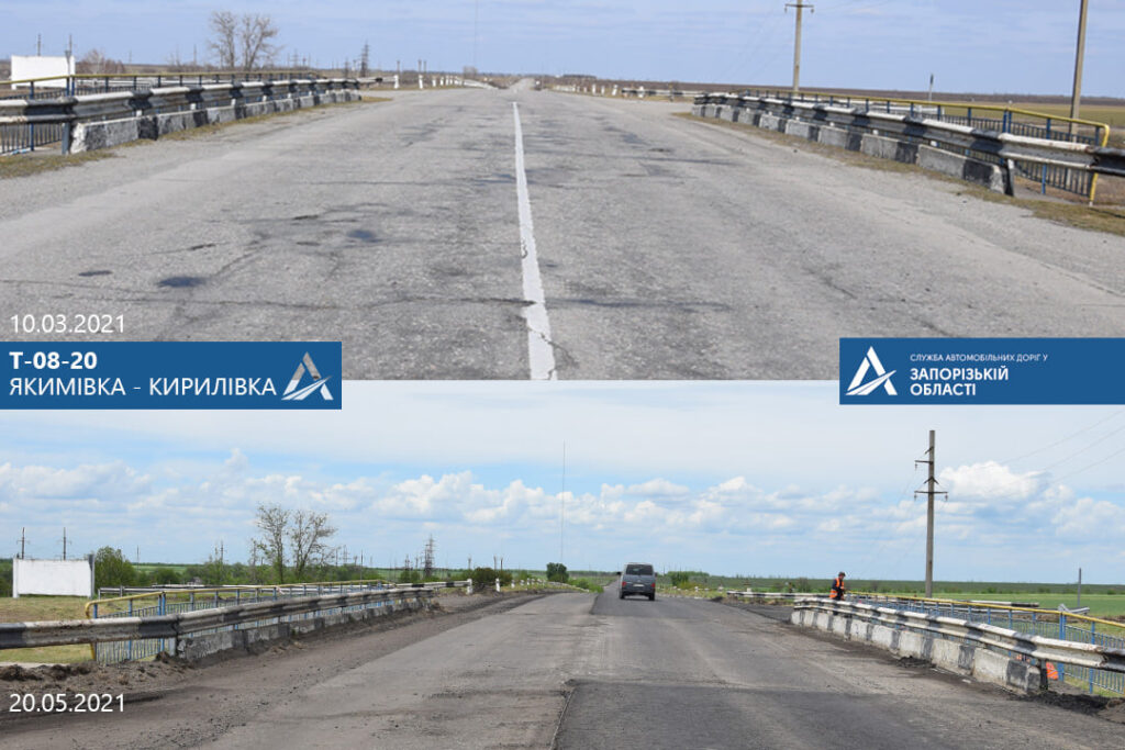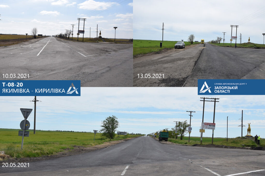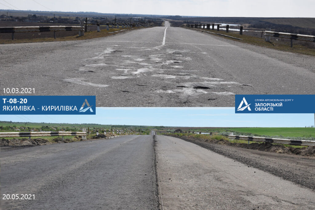 Нагадаємо, 1 травня було розпочато поточний середній ремонт автомобільної дороги Т-08-20 Якимівка – Кирилівка. Це територіальна автомобільна дорога, яка розпочинається від селища Якимівка, перетинає міжнародну трасу М-18 Харків – Сімферополь – Алушта – Ялта та пролягає до курортного селища Кирилівка.