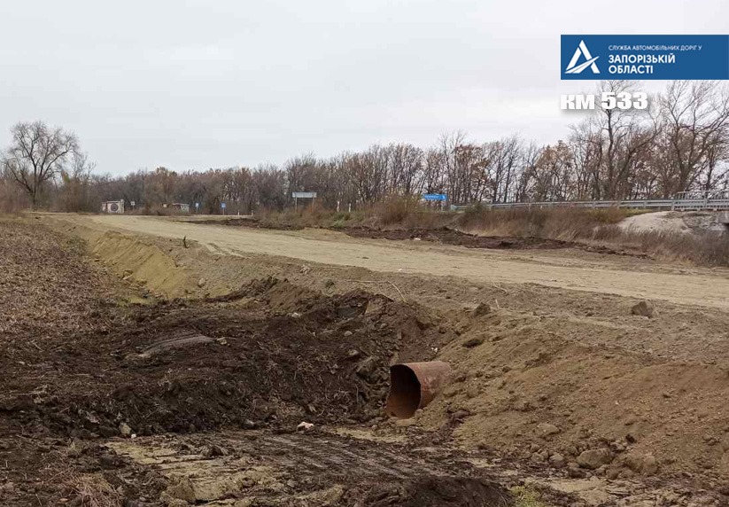 На двух мостах, что на 533 и 534 км автодороги Н-08 (вблизи села Любимовка), рабочие уже обустраивают объездные дороги на время реконструкции и начали подготовку основы для монтажа трубы.