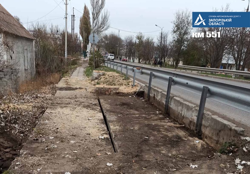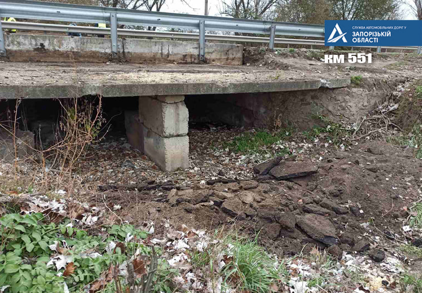На мосту, на 551 км дороги Н-08 (в городе Орехов), пока ожидается начало работ по монтажу труб.