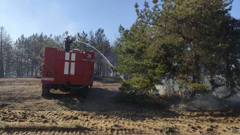 Вогнем охопило лісництво біля дачного кооперативу «Хвиля» в Енергодарі – на території Кам’янсько-Дніпровського району. Станом на 15:30 пожежу гасили 35 пожежних і 11 одиниць техніки.