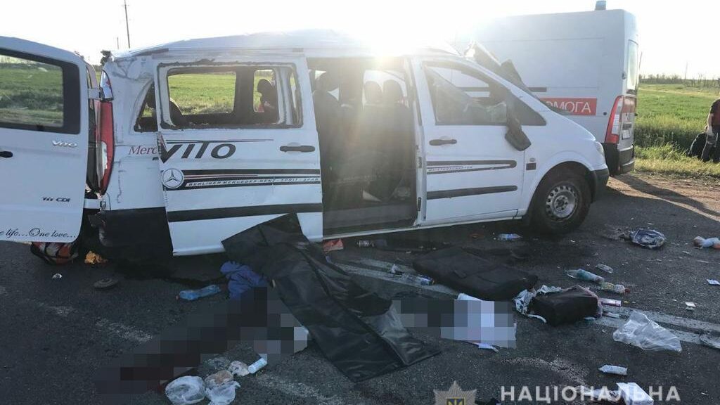 Водій «Лади Калини» 1990 року народження на трасі «Мелітополь-Маріуполь» не поступився дорогою і влетів в маршрутне таксі «Мерседес-Віто». Від сильного удару мікроавтобус перекинувся.