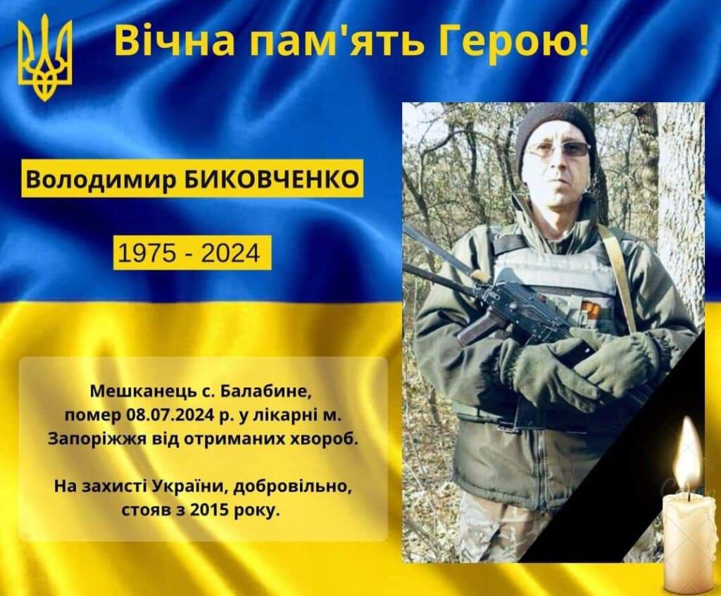 Сьогодні, 12 липня, в смт Балабине проведуть в останню путь захисника Володимира Биковченка. Чоловіку навіки тепер 49 років.