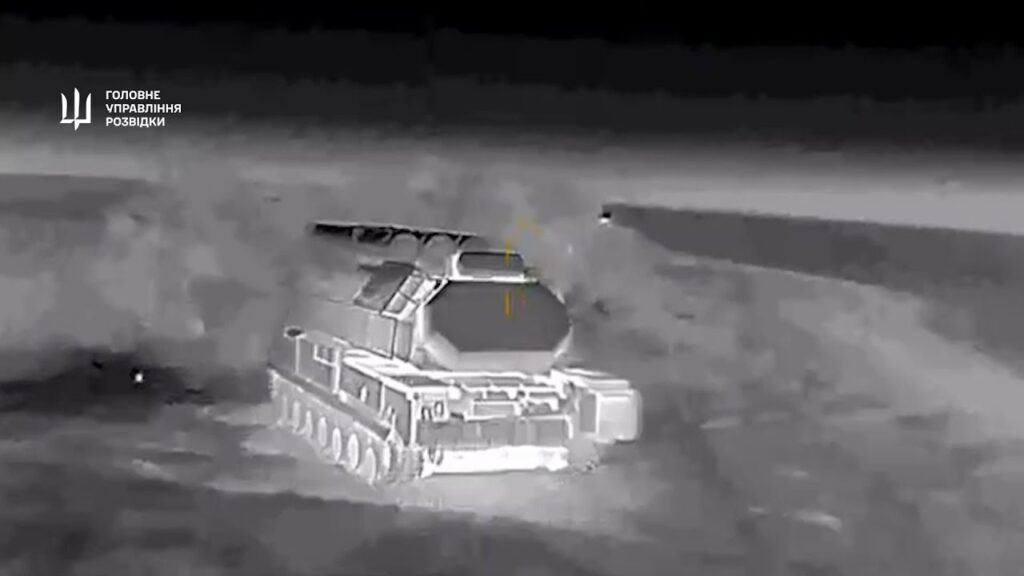 «На відео ― приголомшливий маневр українського дрона, який ухиляється від зенітної ракети московитів, а також епізоди успішних вогневих уражень систем ППО окупантів», – повідомили у ГУР.