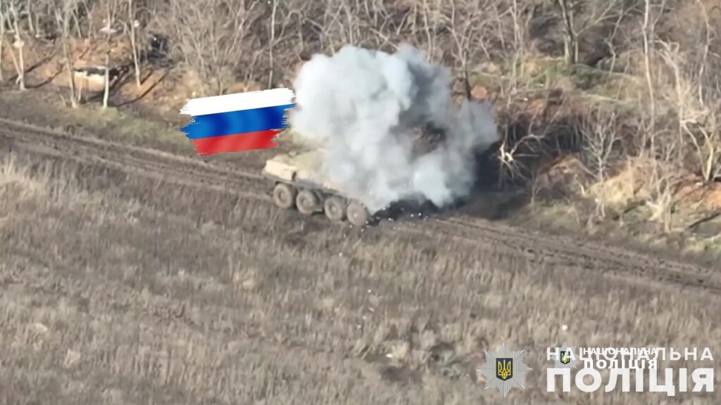 Правоохоронці за допомогою дрону-камікадзе знищили ворожий комплекс спостереження «Муром-М». Серед ураженої бойової техніки — 2 бронетранспортери, підбитий на ходу танк та бойова машина піхоти разом з екіпажем.