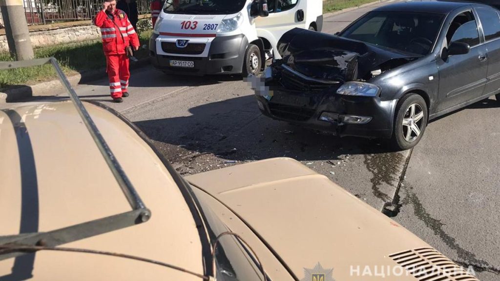 Аварія сталася на проспекті Західному в місті Бердянськ. 55-річний водій автомобіля «ЗАЗ» виїхав на зустрічну смугу руху і врізався спочатку в «Ford», а потім – у автомобіль «Nissan».