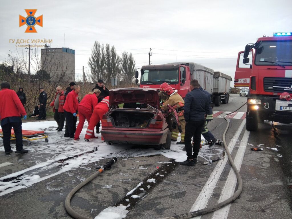 Смертельна аварія сталася сьогодні, 3 листопада, на трасі в одному із населених пунктів Запорізького району. Зіштовхнулись легковий автомобіль та вантажівка.