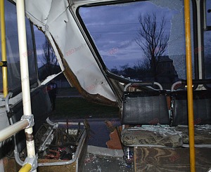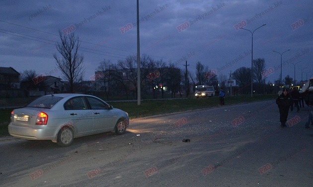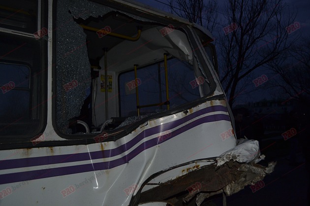 Авария произошла сегодня, 1 апреля, около семи часов вечера на Мелитопольском шоссе в Бердянске. К счастью, никто из пассажиров автобуса не пострадал.