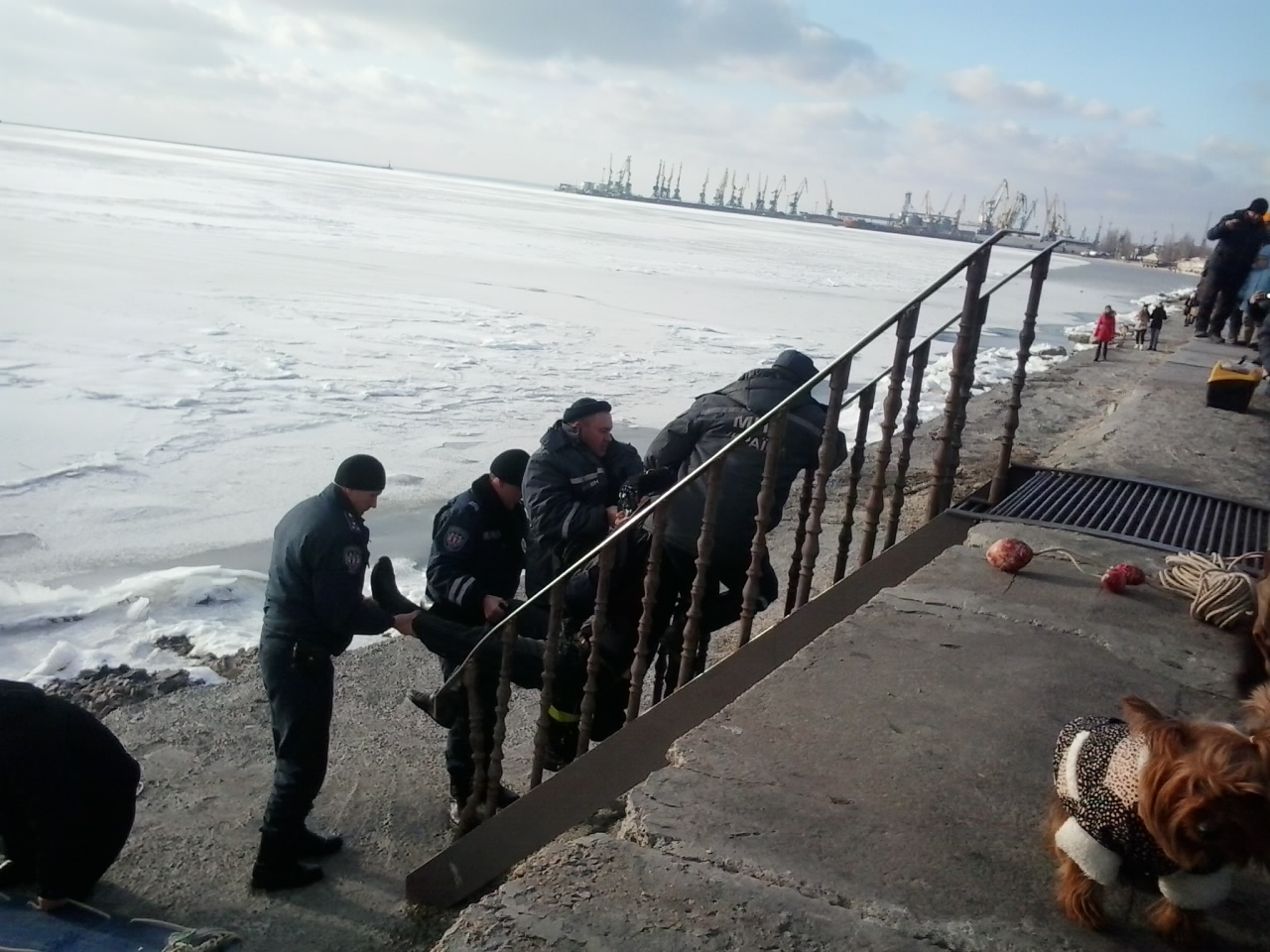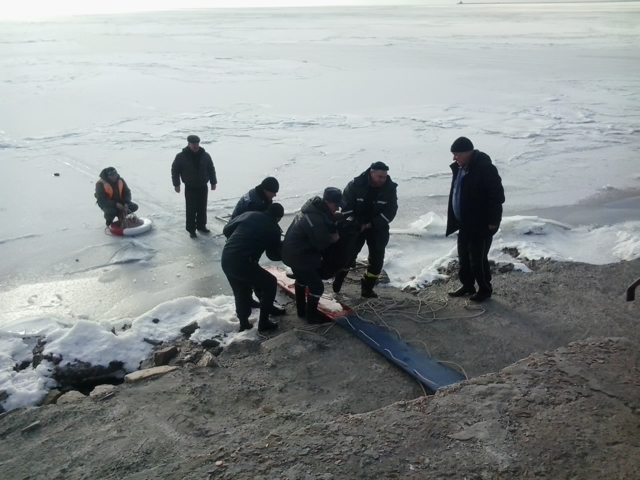 Инцидент произошел в субботу, 28 января, в Бердянске. Мужчина провалился под лед на побережье залива на расстоянии 200 метров от берега.