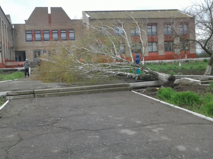 В селе Новониколаевка Мелитопольского района огромное дерево от порывов ветра упало прямо на школьный двор.