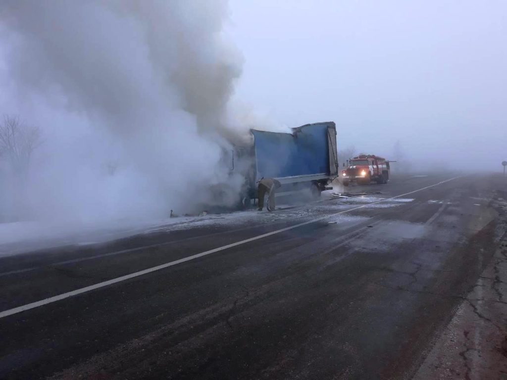 В области на трассе сгорел грузовик, перевозивший мебель – ФОТО