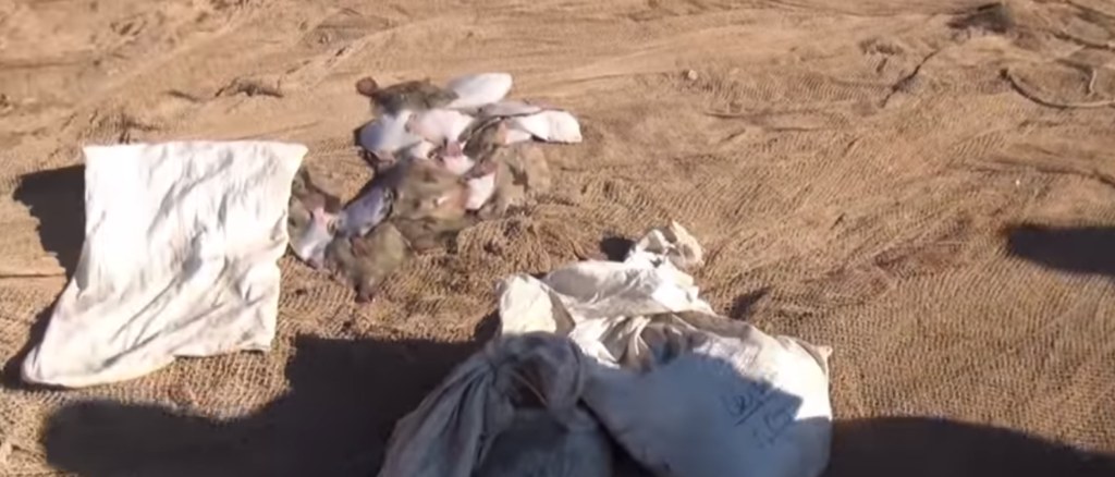 Двое мужчин в районе населенного пункта Строгановка (побережье Азовского моря) на маломерном судне занимались незаконной ловлей рыбы. Во время осмотра правоохранители обнаружили 29 сетей общей длиной почти 1,5 километра, а также 4 рыбы осетровых пород и 80 штук камбалы.