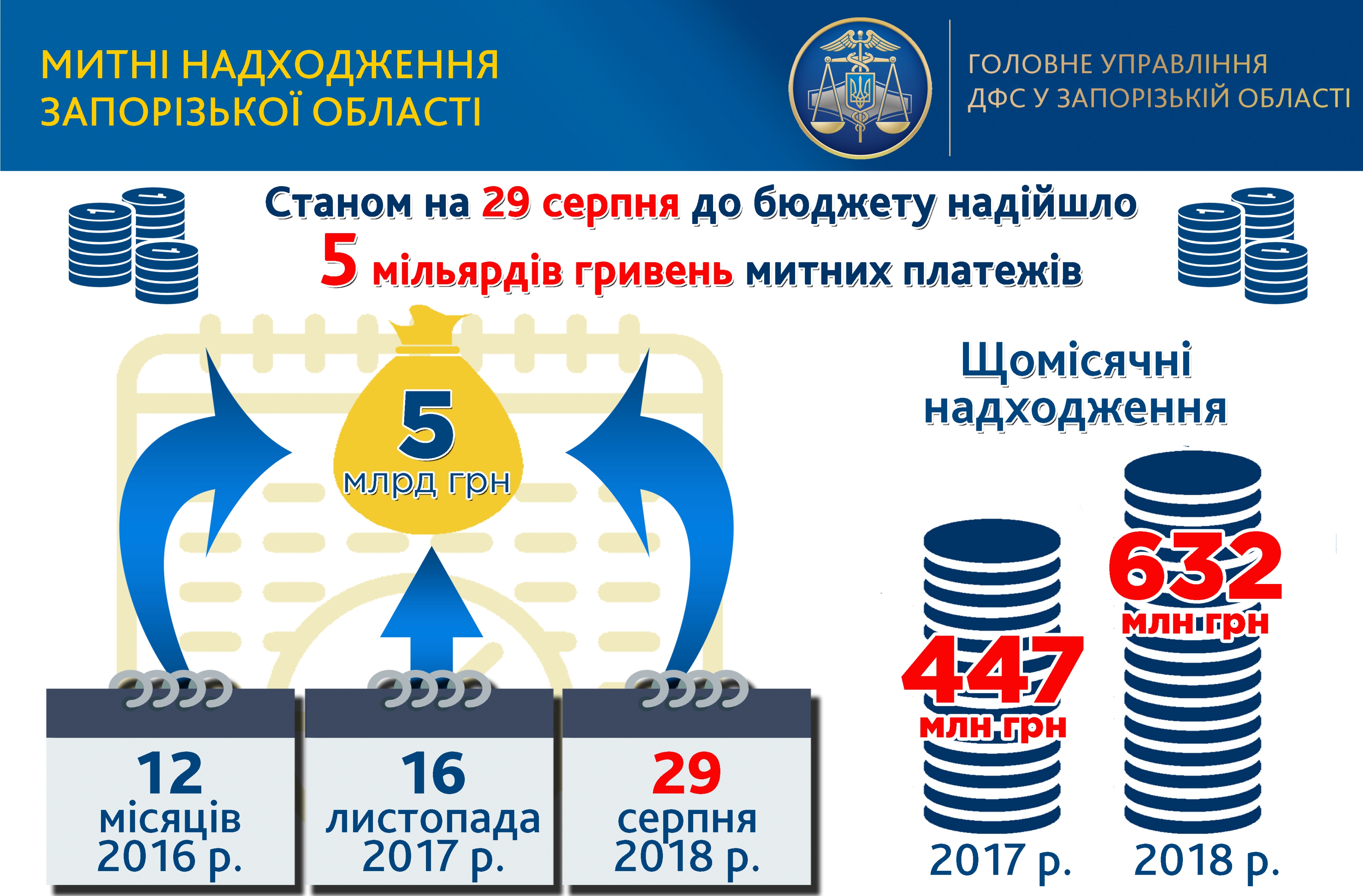В Запорожской области поступления таможенных платежей составили более 5 миллиардов гривен