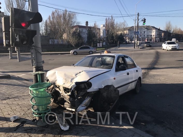 ДТП произошло на перекрестке пр. Б. Хмельницкого и ул. Героев Украины. Автомобиль Lanos (Алекс-такси), врезался в стоявшую на перекрестке Таврию. От силы удара ЗАЗ развернуло и выбросило на встречную полосу. Здесь он задел ВАЗ четвертой модели, а сам Lanos после столкновения с Таврией влетел в столб.
