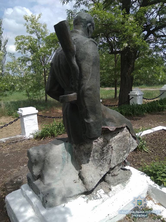 В среду, 16 мая, в Бильмакское отделение полиции поступило сообщение о том, что поврежден памятник, который установлен на месте захоронения неизвестных солдат Второй мировой войны в селе Березовка. Злоумышленник похитил часть медной обшивки.