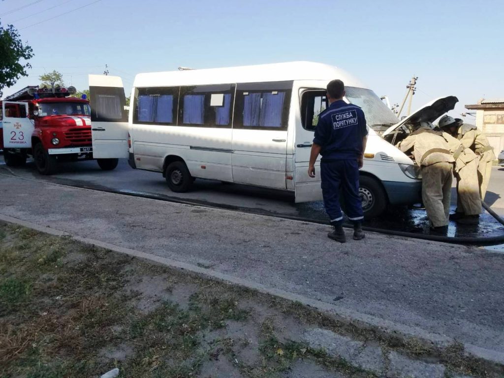 Прибыв на место происшествия, спасатели установили, что горит рейсовая маршрутка «Акимовка-Мелитополь». На момент возгорания в ней находился водитель, который быстро ее покинул.