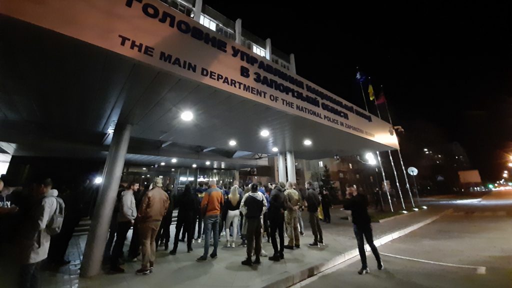 “Ця акція — в підтримку наших хлопців, яких сьогодні затримали в Києві. Там звучали такі слова, що ми — волонтери, добровольці, ветерани — повинні вибачитися. За що? З вуст Сивохо звучить, що у нас в країні нібито йде громадянська війна і внутрішній конфлікт, — сказав організатор акції Максим Зайченко. — Тому ми зібралися в Запоріжжі, щоб передати вимоги обласному управлінню поліції та поліції в Києві. Наша головна вимога — не здавати позиції України. А зараз ми бачимо лише поступки країні агресору.”