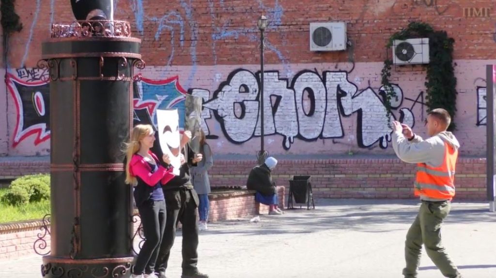 На площі, навпроти театру ім. В.Г. Магара встановили незвичайну афішу. Відео з встановлення кованої колони з театральними масками опублікував запорізький блогер Михайло Потапенко.