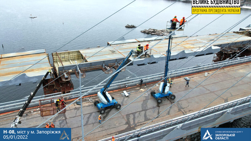 Раніше ми повідомляли, що на будівництві вантового мосту настав передостанній етап робіт. Мостобудівники розпочали монтаж деформаційних швів, призначених для вільного переміщення в місцях з’єднання плити проїзної частини та плавного проїзду автомобільного транспорту над ними.