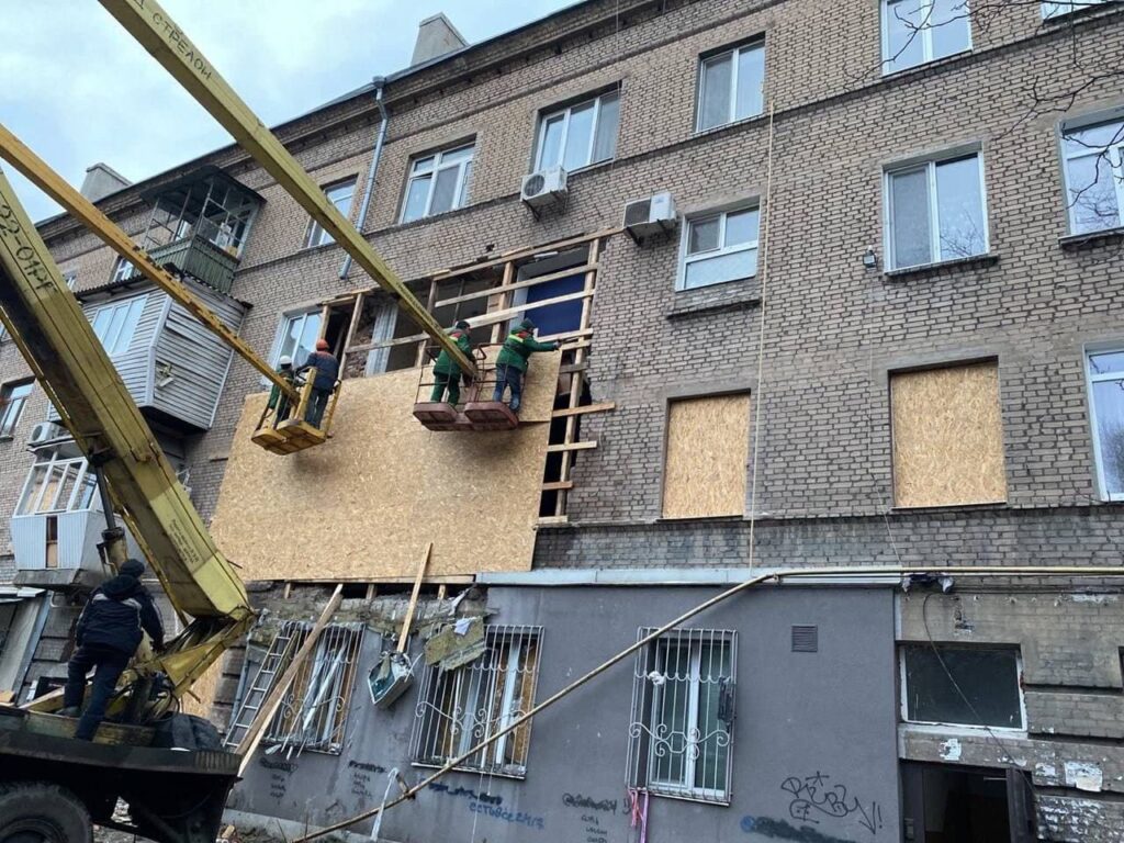 - Виконуються роботи по відновленню пошкодженого скління в найближчих будинках.