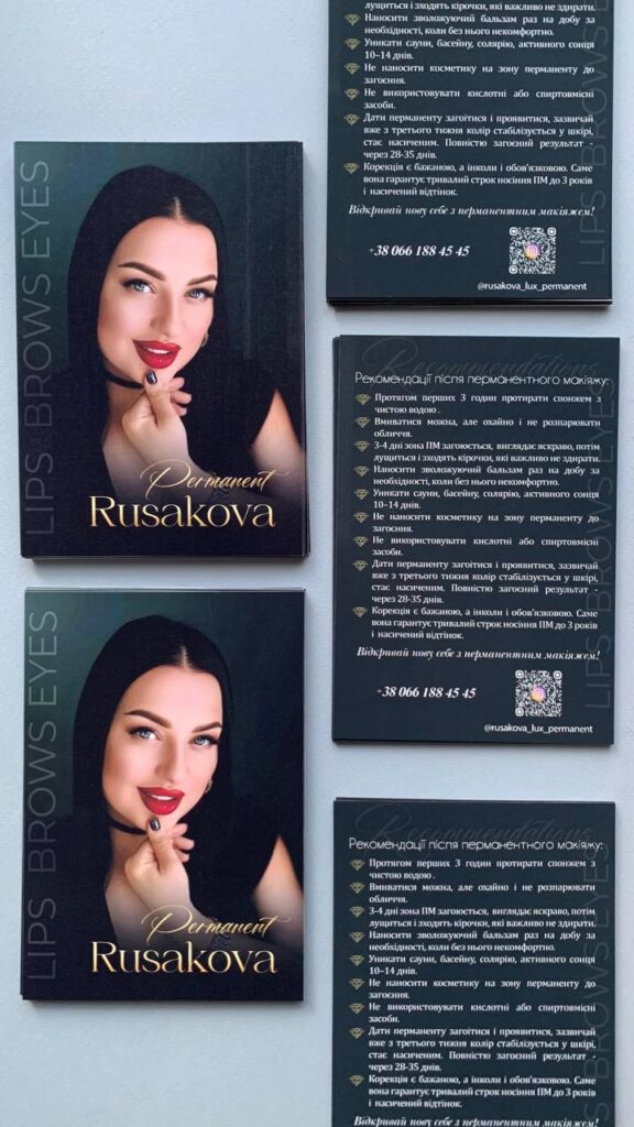 «Усе приходить з досвідом. У блозі в Instagram я показувала гору невдало роздрукованих візиток і писала, що не все виходить ідеально з першого разу. Тут не про “успішний успіх”, а про працю й увагу до деталей. Звісно, я переживала, поки підбирала папір. Але коли знайшла той, на якому продукція виглядає справді неймовірно, тоді вже отримала задоволення від результату», – розповідає дизайнерка.