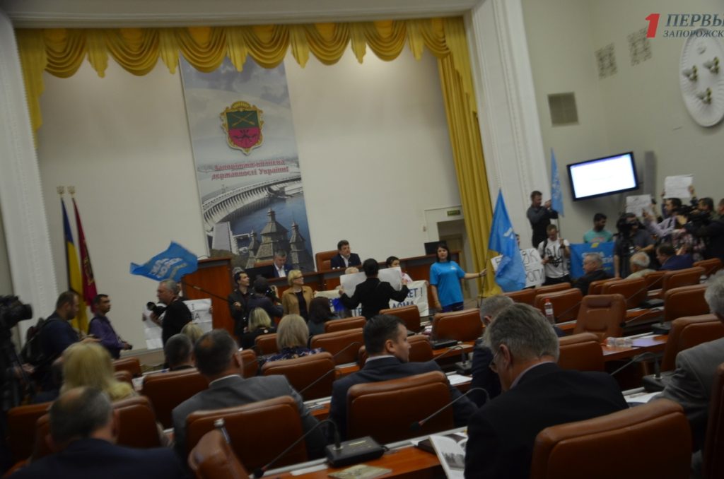 Сегодня, 26 апреля, в Запорожье прошло несколько митингов. Особо активные общественники прошли в зал и скандируют “отставку”.