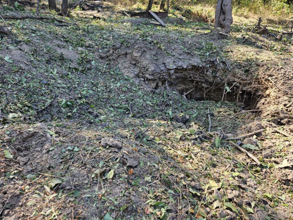 Під час обстеження фахівці Держекоінспекції зафіксували на місці вибуху воронку розміром 2×3 метри, а також засмічення прилеглої території уламками та залишками руйнувань загальною площею майже 50 квадратних метрів.