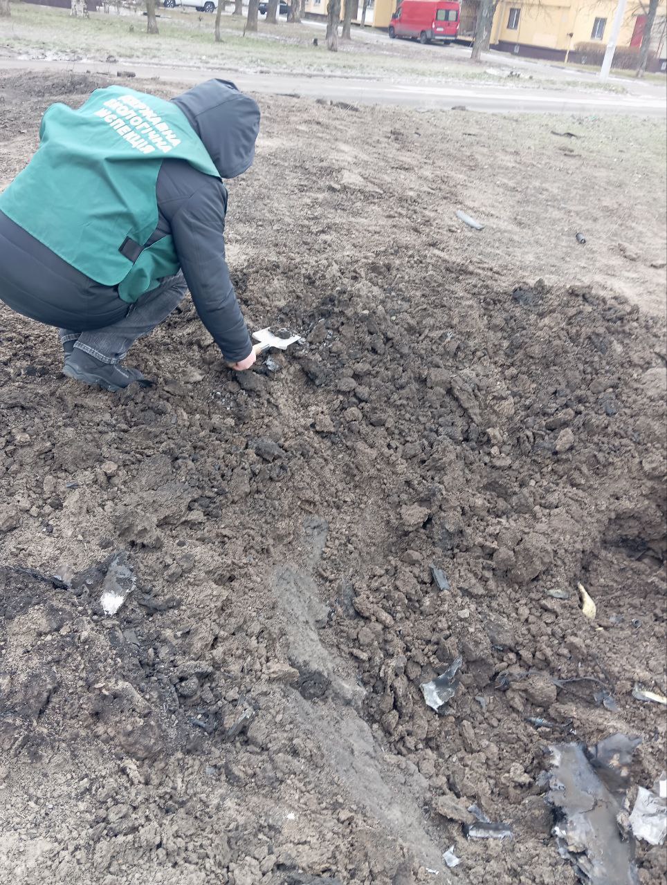 Внаслідок удару російського безпілотника утворилася воронка площею 9 квадратних метрів. Крім того, засмічено та забруднено відходами руйнувань 400 квадратних метрів території. Фахівці відібрали проби ґрунту для подальших лабораторних досліджень.
