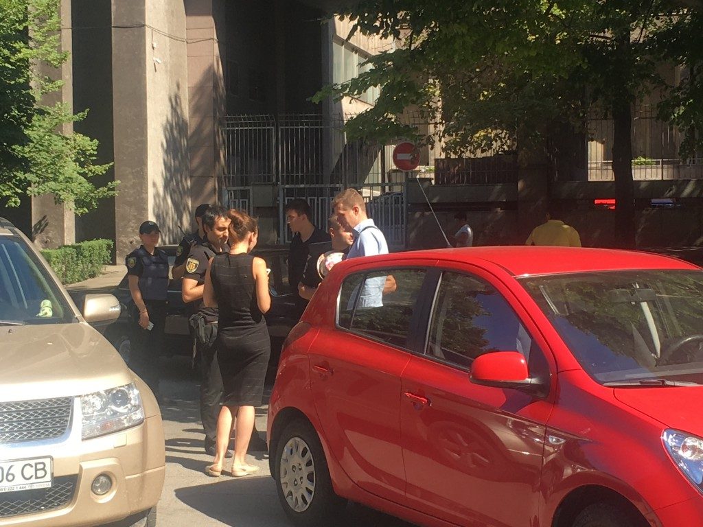 Заболотная, которой недавно неизвестные «перерыли» документы в офисе, решила перестраховаться и взывала на место полицейских, которые перекрыли дорогу по правую сторону от областного совета.