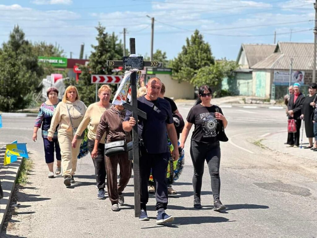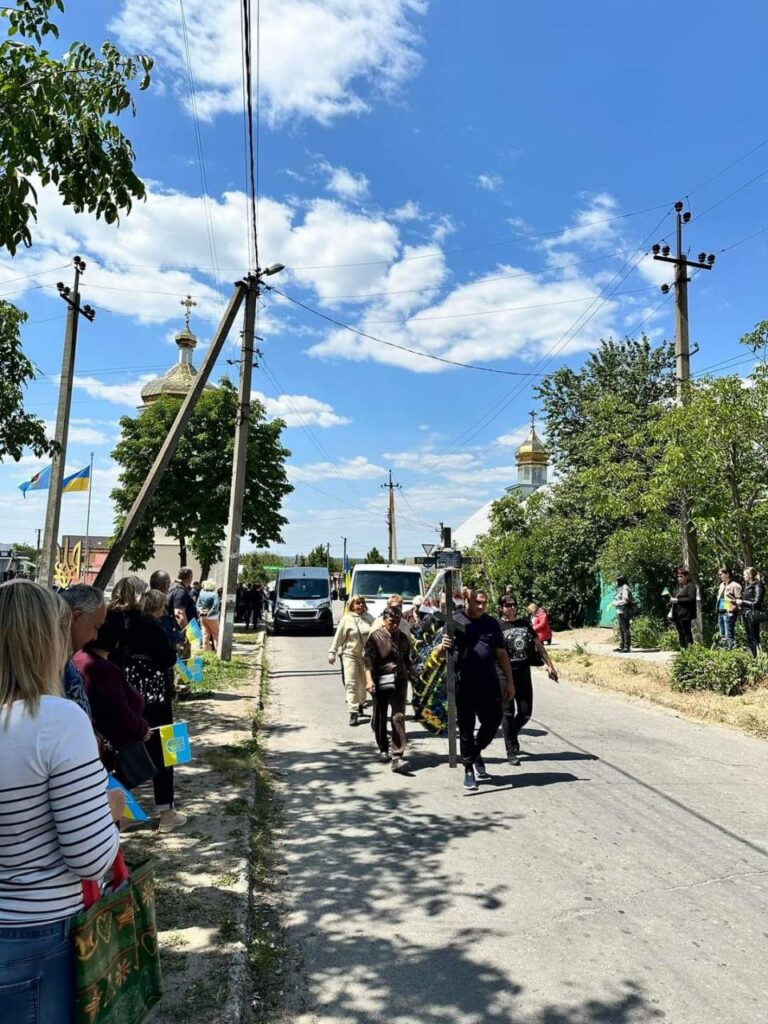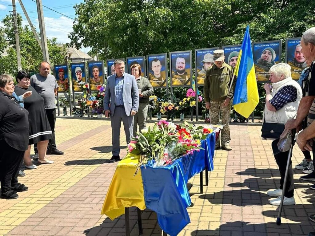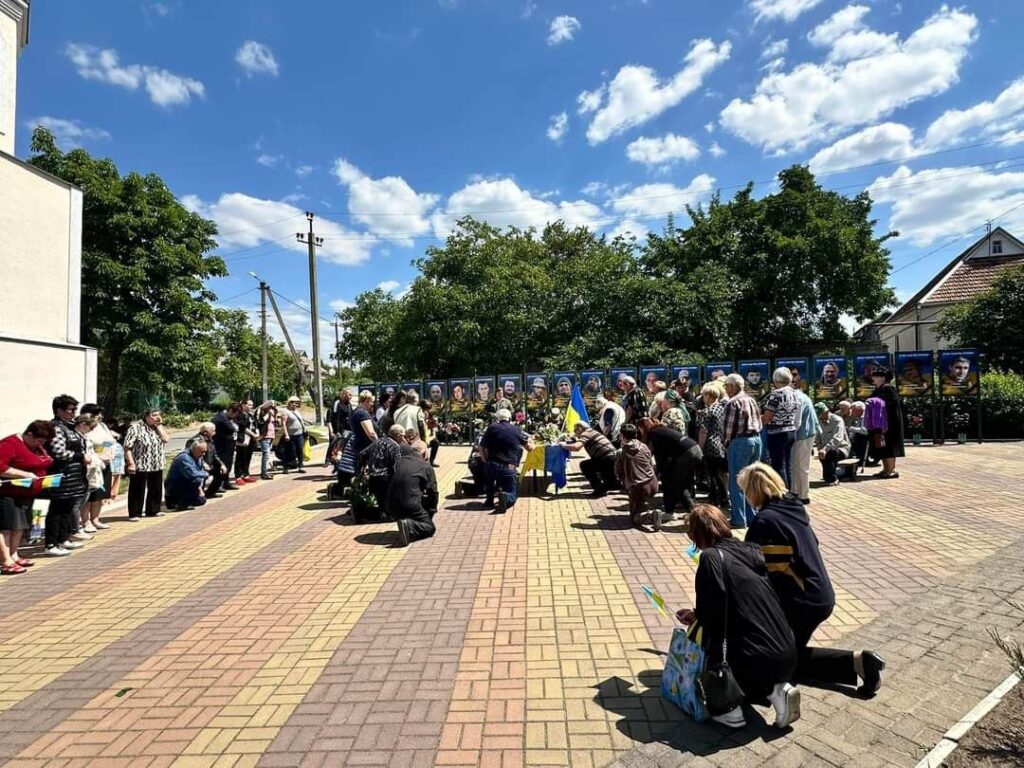 У п’ятницю, 17 травня, в Балабине полеглого воїна провели в останню путь. Під час прощання, в знак поваги до полеглого захисника, люди встали на одне коліно.