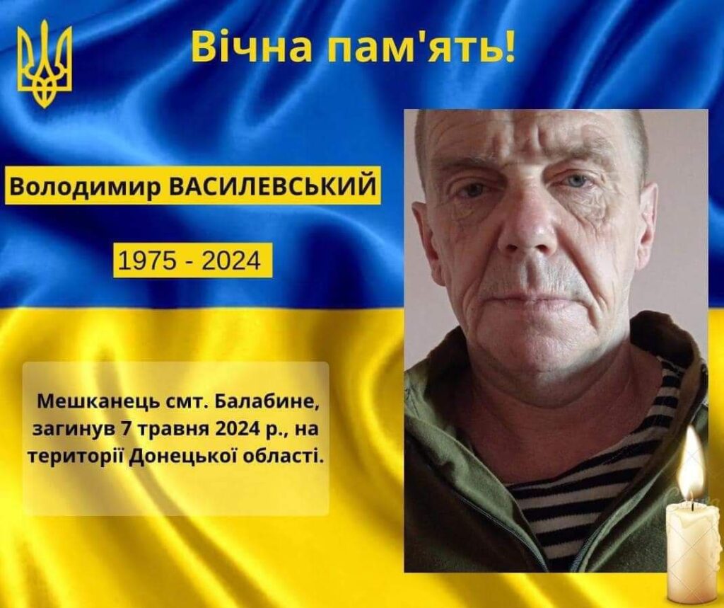 На Донецькому напрямку загинув мешканець селища міського типу Балабине. Володимиру Василевському було 48 років.