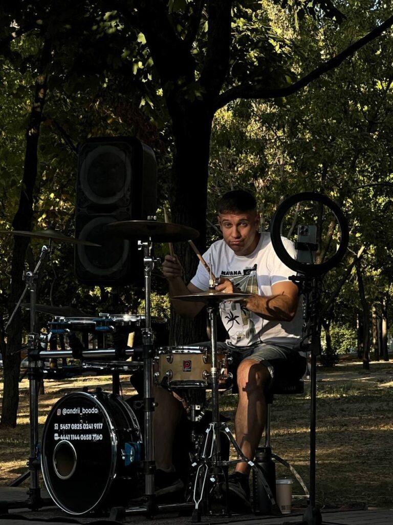 Андрій Бударин – вуличний барабанщик, якого чимало жителів Запоріжжя бачили у парках різних районів. За освітою – електрик, близько 10 років працював на заводі, паралельно грав у гуртах і розвивав музичний бізнес: продавав інструменти та створював репетиційну базу.