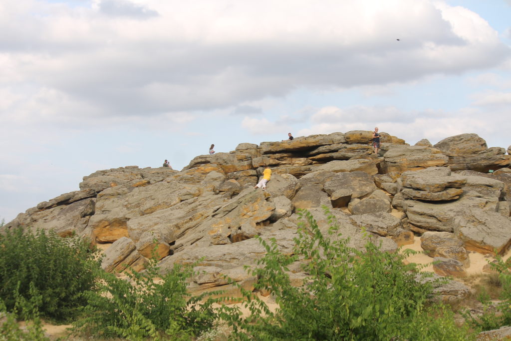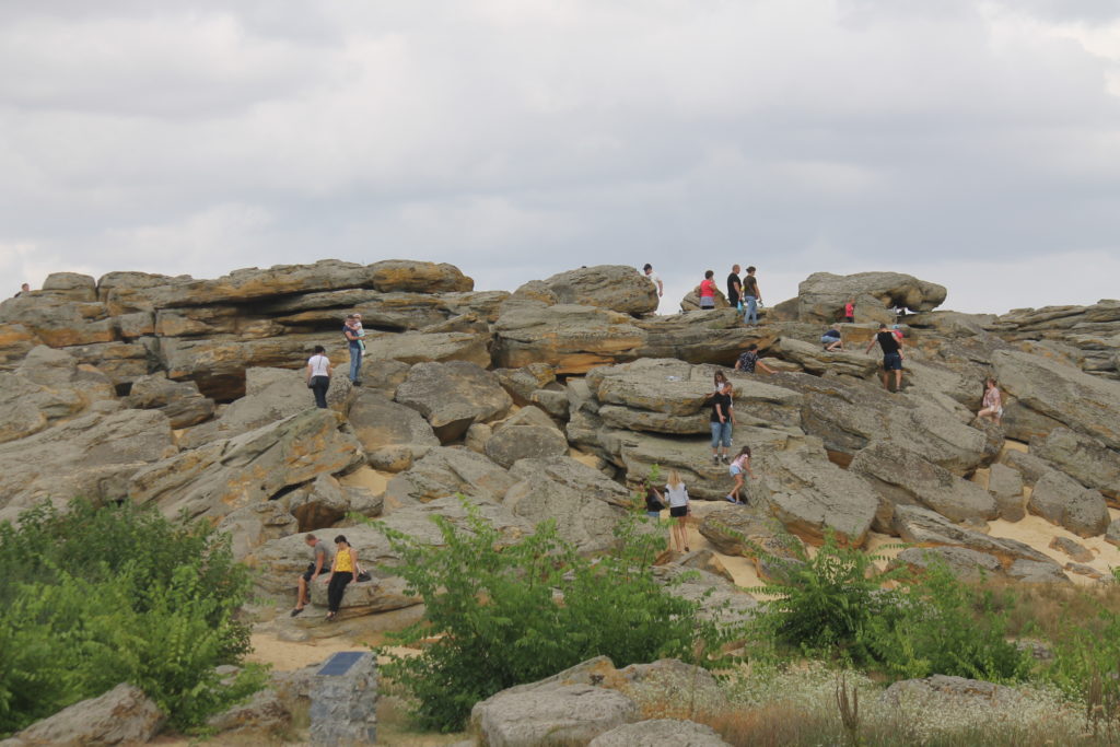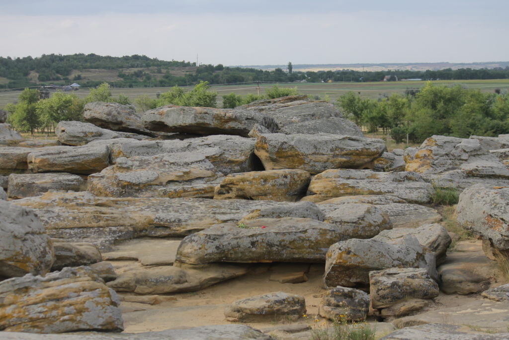 «Кам’яна Могила» – унікальна пам’ятка давньої культури, розташована в долині річки Молочної за 16 кілометрів від Мелітополя, поблизу селища Мирне. Серед степу височіє пагорб заввишки до 12 метрів, утворений приблизно з трьох тисяч масивних пісковикових плит, що займають площу близько 1,6 гектара. Усередині цього кам’яного масиву міститься складна система природних гротів і печер, які стародавні люди сприймали як священне місце й використовували для ритуальних обрядів.