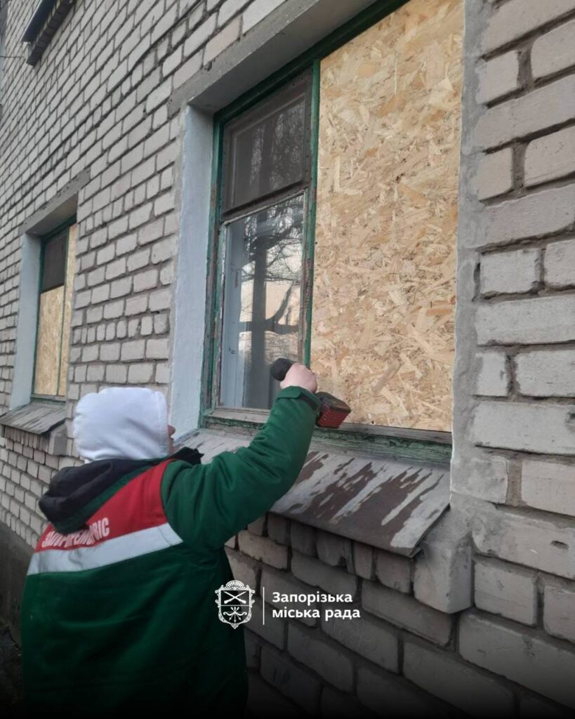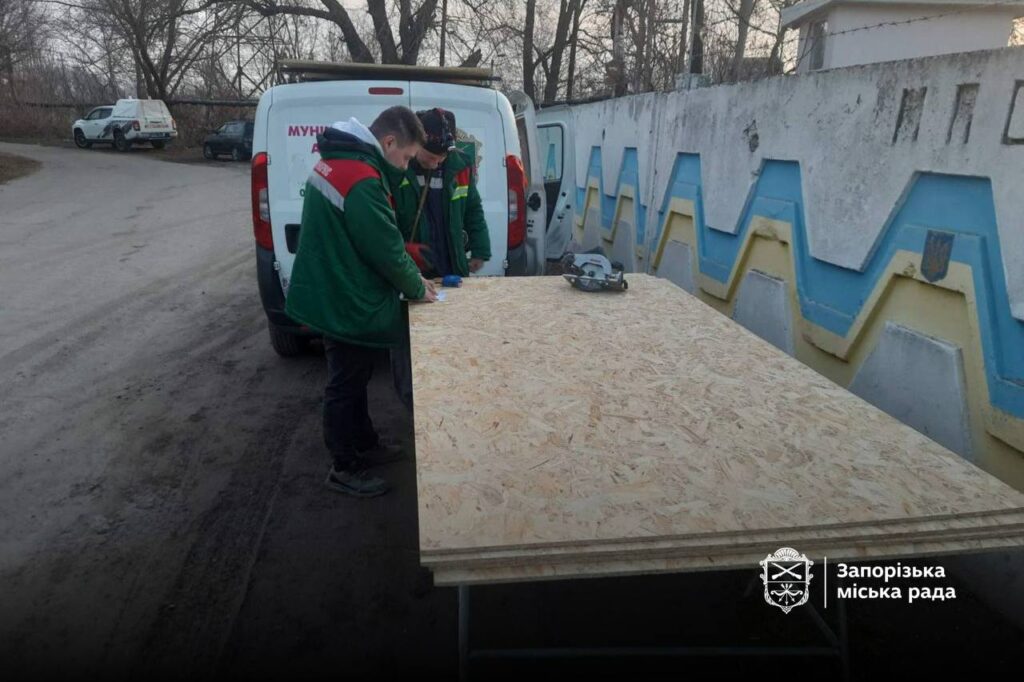 Комунальники «Запоріжремсервісу» оперативно відреагували на заявку людей і забили потрощені вікна OSB.