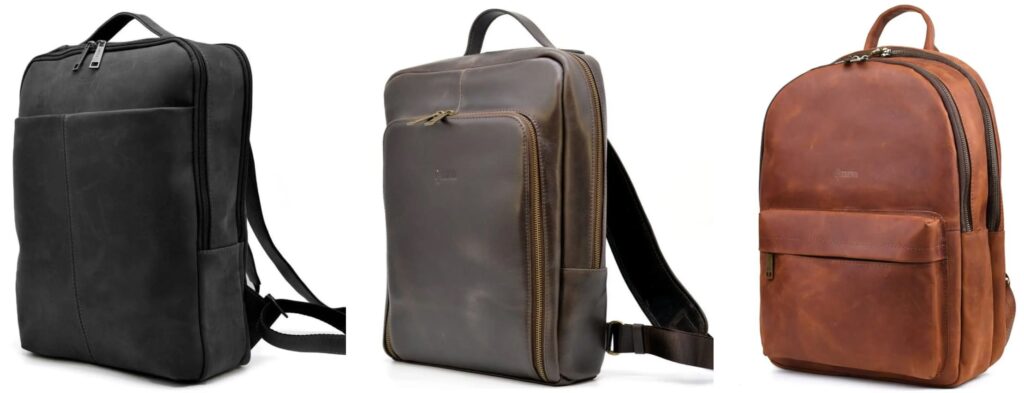 Найкраще для рюкзаків підходить щільна натуральна шкіра — full-grain або якісна top-grain. Вона тримає форму, не розтягується під вагою ноутбука і не «пливе» по швах. Занадто м’яка шкіра виглядає привабливо спочатку, але з часом втрачає геометрію, а рюкзак починає нагадувати м’який мішок.