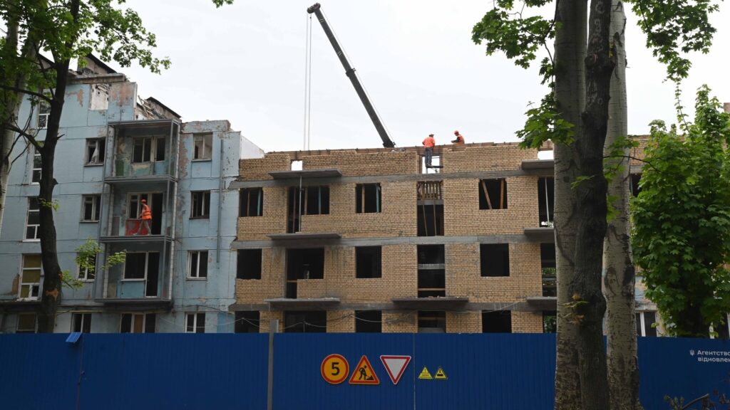 У випадку іншого пошкодженого панельного дев’ятиповерхового будинку – по вулиці Запорізька 2-А – використали протилежний підхід. Конструкції пошкодженого першого під’їзду розібрали, щоб на його місці побудувати новий.