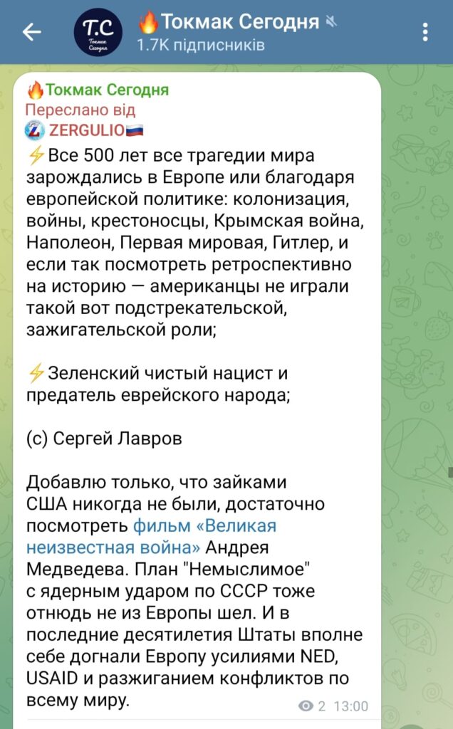 Подібні неправдиві антиукраїнські меседжі російська пропаганда системно тиражує за допомогою мережі пропагандистських ресурсів.