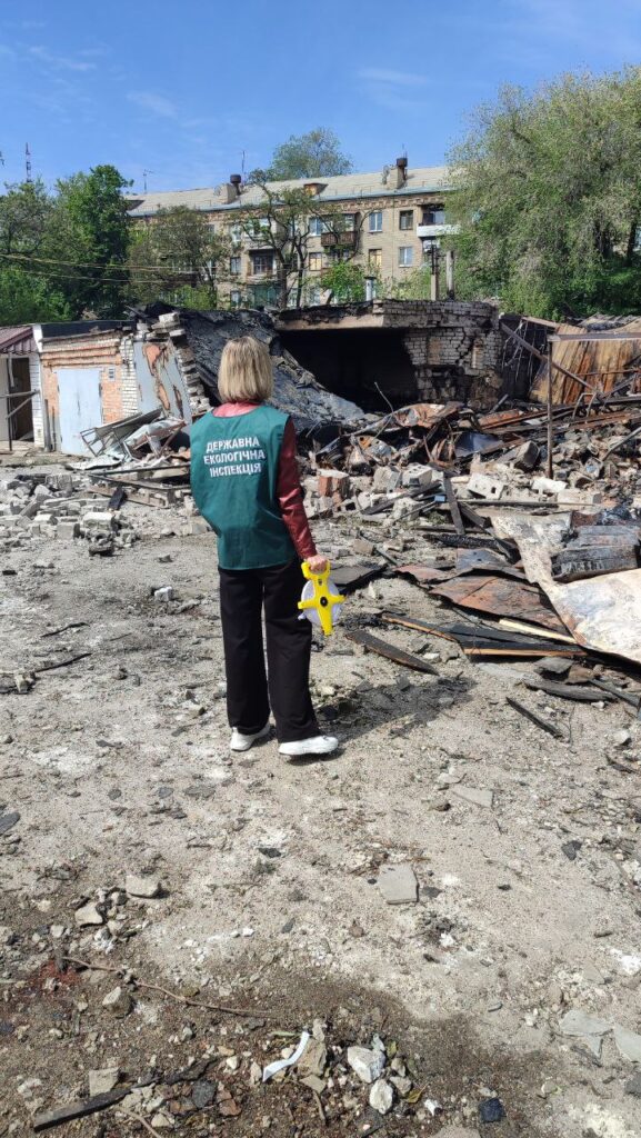 Під час обстеження зафіксовано забруднення території відходами руйнування, зокрема уламками бетону, цегли, металевих конструкцій, фрагментами будівельних матеріалів та іншими залишками зруйнованих споруд. Загальна площа склала понад 250 квадратних метрів.