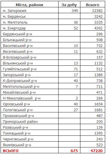 За останню добу в області зареєстровано 675 нових випадків захворювання на COVID-19. Всього станом на 8:00 20.12.2020 зареєстровано 47220 лабораторно підтверджених випадків, в т.ч. 2712 – серед дітей (за добу – 14) та 3030 серед медичних працівників (за добу – 24).