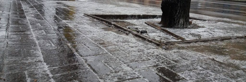 С понижением температуры во время дождя и снега 21 января дороги и тротуары города покрыла гололедица. На дороги города вышла техника, которая расчищает и посыпает антигололедными материалами тротуары и улицы.