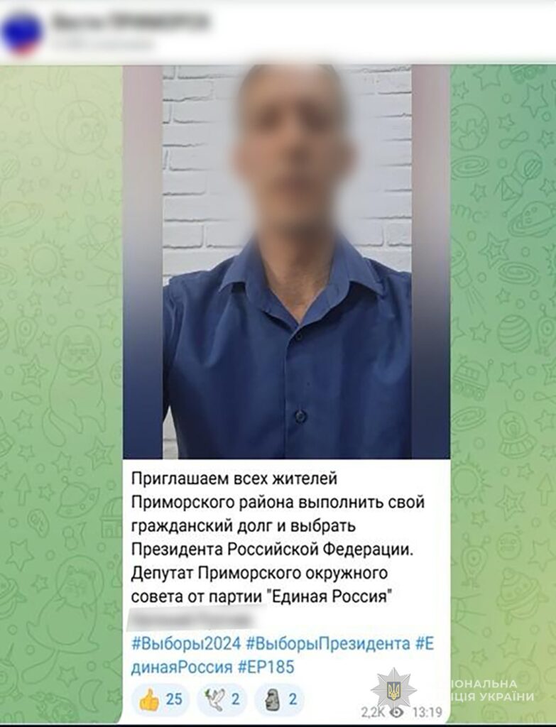 Після початку повномасштабного вторгнення директор установи почав співпрацювати з росіянами. Восени 2023 року за результатами псевдовиборів на окупованих територіях підозрюваного «обрано» депутатом до незаконного органу влади – «Приморского окружного совета депутатов» від партії «Единая Россия».